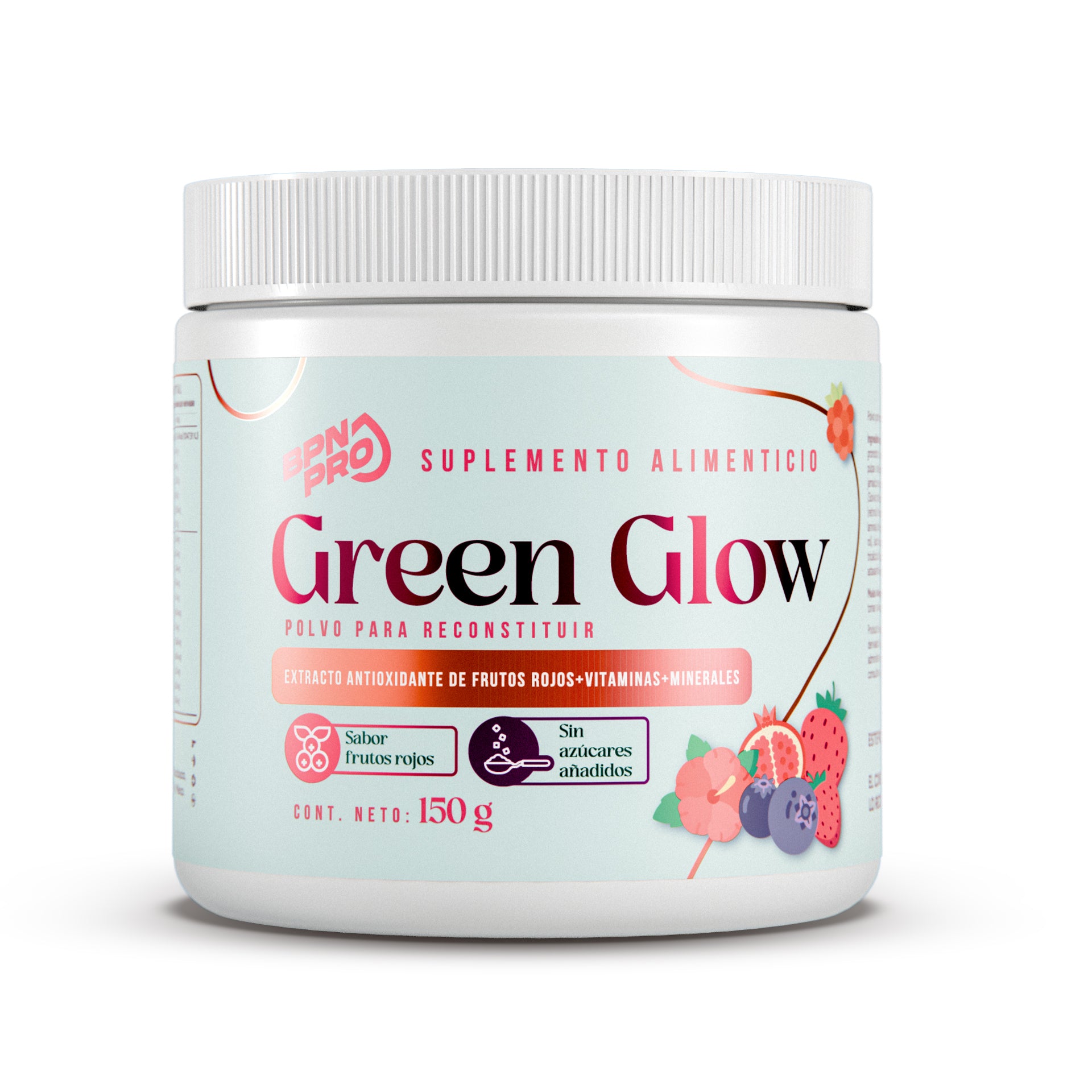 Green Glow Frutos Rojos BPN PRO | Jugo Verde en Polvo con Extractos Naturales, Vitaminas y Minerales | Suplemento Antioxidante sin Azúcar Añadido | 150 g